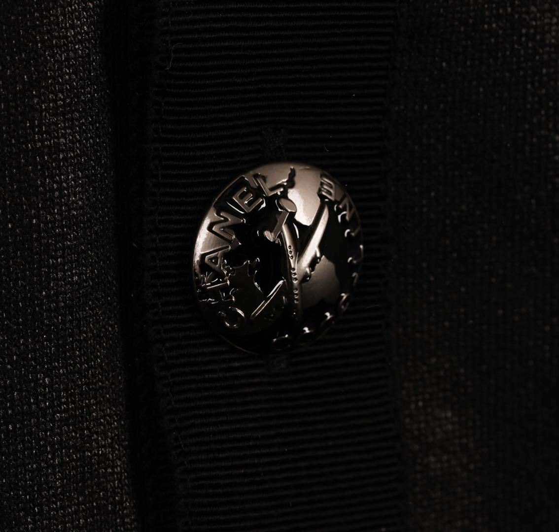 One Ladies Chanel Jacket. The outside of the jacket is composed of 90% cotton and 10% cashmere. The inside is composed of 100% silk. The jacket is in good condition. Made in France. Size as marked 40 (France).