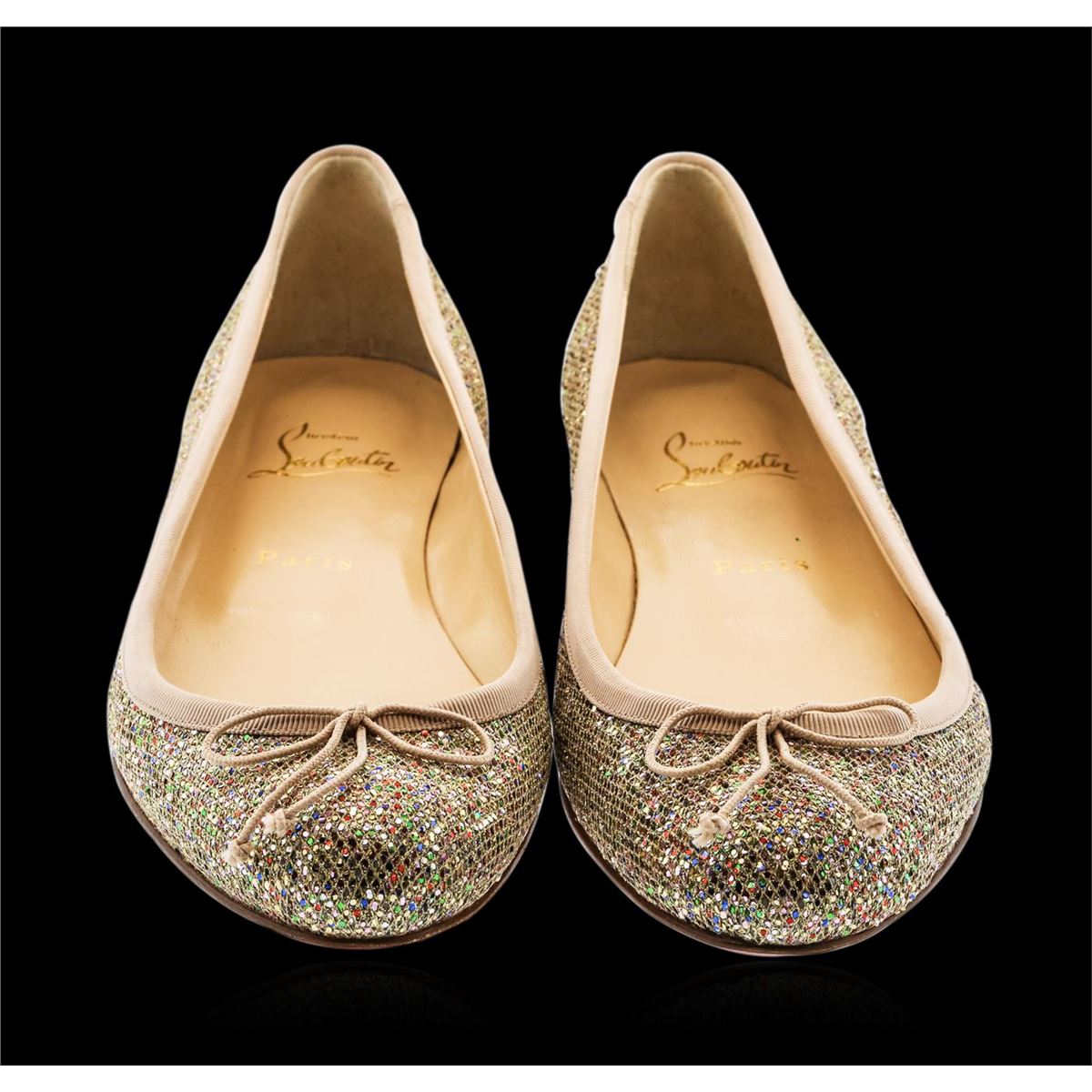 These beautiful Christian Louboutin Gozul Strass Glitter Flats provide a stylish yet elegant tone. These flats are perfect for the everyday woman who wants to remain stylish yet comfortable. Size 10.