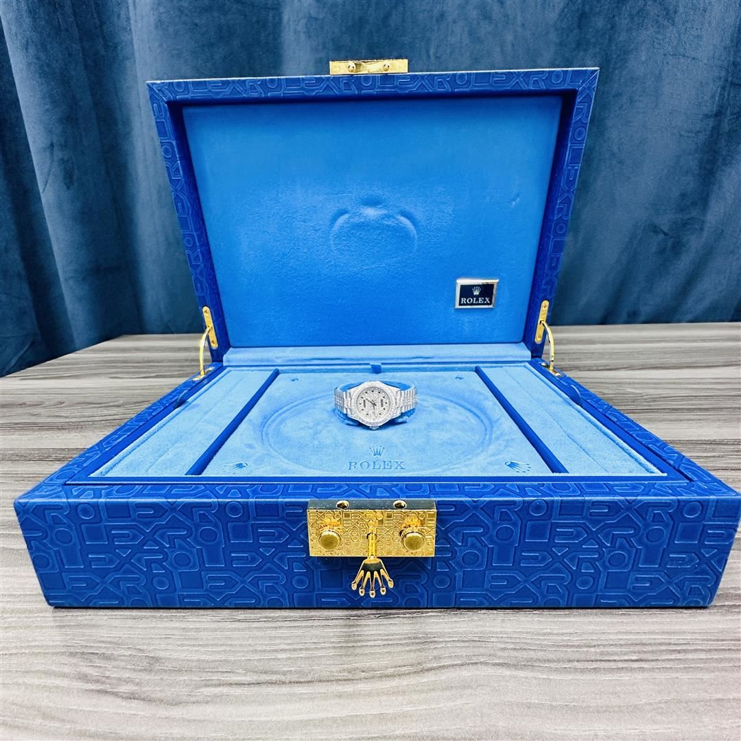Ladies Rolex President white gold and diamonds. Incredible, beautiful and serviced looks and runs like new! Custom dial with diamonds and emeralds, Custom Bezel with diamonds, Custom diamonds on the bracelet, Custom diamonds on the lugs.