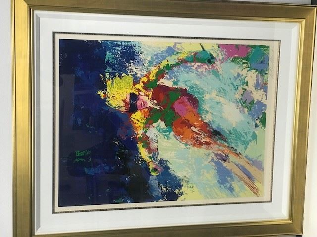 "Lady Skier" by LeRoy Neiman (1921-2012) - Hand signed limited edition serigraph AP (Artist Proof) - Framed size = 43" wide x 54" tall