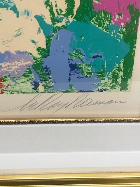 "Lady Skier" by LeRoy Neiman (1921-2012) - Hand signed limited edition serigraph AP (Artist Proof) - Framed size = 43" wide x 54" tall
