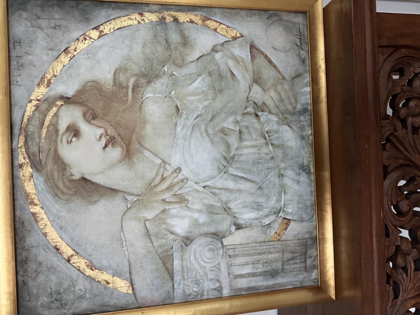 The late , great Classical artist Richard Franklin created this beautiful 24x24" image in mixed-media on canvas . It is signed & framed with COA.