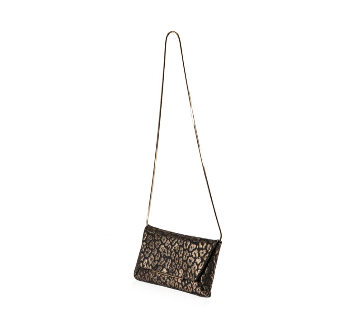 An enviable crossbody bag crafted from stunning metallic jacquard is destined to be very bit as addictive as its delectable namesake. The streamlined, accordion-style silhouette gives way to a pair of petite compartments, making organization effortless, and features a goldtone chain-link strap that perfectly complements the classic look. Features a hidden magnetic flap enclosure, exterior slip pocket, and Grosgrain lining. The bag measures approximately 9.5" x 6" x 1.5" with a 21" strap drop.