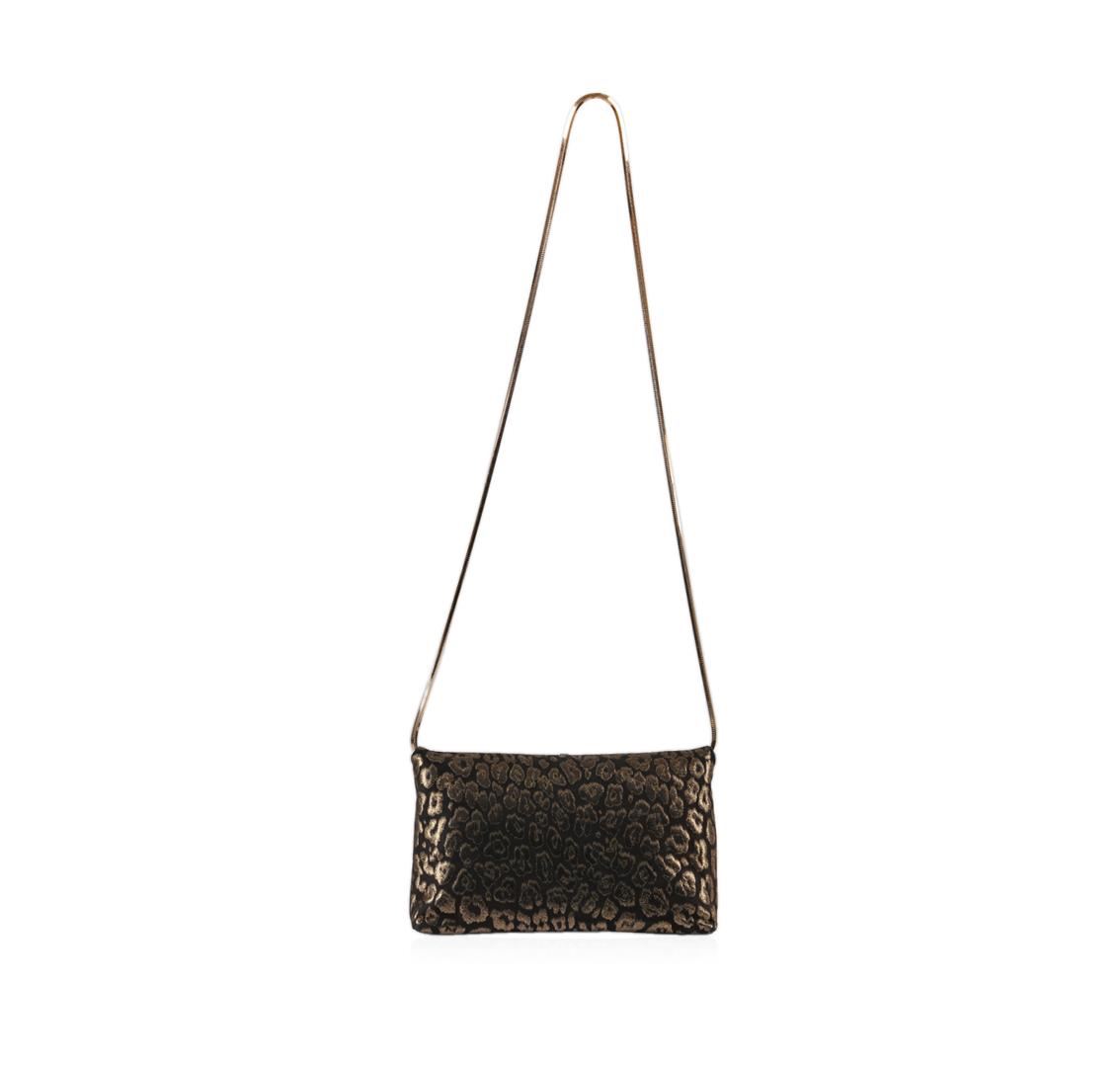An enviable crossbody bag crafted from stunning metallic jacquard is destined to be very bit as addictive as its delectable namesake. The streamlined, accordion-style silhouette gives way to a pair of petite compartments, making organization effortless, and features a goldtone chain-link strap that perfectly complements the classic look. Features a hidden magnetic flap enclosure, exterior slip pocket, and Grosgrain lining. The bag measures approximately 9.5" x 6" x 1.5" with a 21" strap drop.