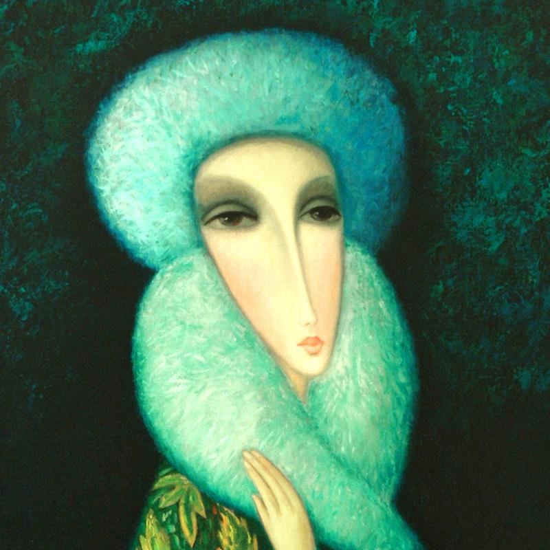 Combining time-honored religious icon painting with western style portraiture, the hauntingly beautiful art of Sergey Smirnov (1953-2006) is inspired by the 'Parsuna' art movement. "Lara" is a limited edition mixed media on canvas, printed in 2005, numbered in verso and hand signed by the artist. Includes Certificate of Authenticity! Measures approx. 25" x 35" (image).