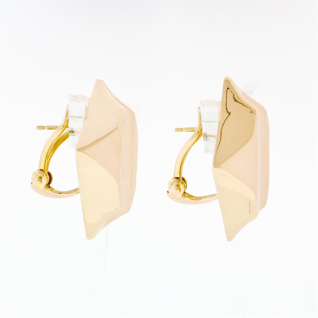 An estate solid 14k yellow gold geometric button Earrings.The earrings measure approximately 20.30mm and weigh a total of 9.47 grams.