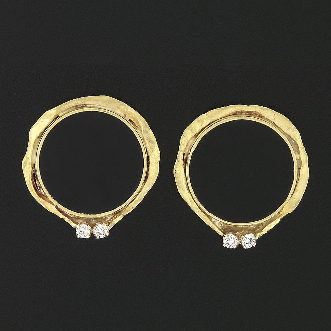 A vintage solid 14K & 22K yellow gold pair of earrings, with 2 round cut natural black onyx (15.25mm), & 4 round brilliant cut natural diamonds (F- VS1; 0.14ctw). The earrings measure approximately 21.75mm in diameter and weigh a total of 9.32 grams.