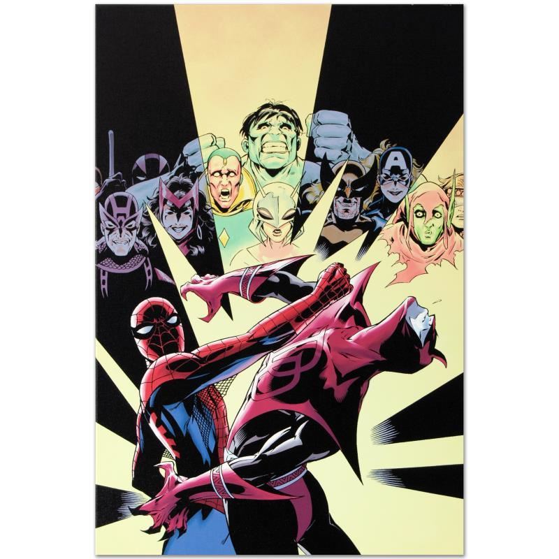 A piece of comic book history, this limited edition, from original art by Patrick Olliffe, depicts the classic Spider-Man in action. Best known for his work on the Spider-Man and Spider-Girl franchises, Patrick Olliffe is also a published author and illustrator. "Last Hero Standing #3" is a limited edition giclee on canvas by Patrick Olliffe presented by Marvel Comics! This piece comes gallery wrapped. Includes Certificate of Authenticity! Measures approx. 18" x 27" (image). This item requires special handling and may have a longer than usual turnaround.
