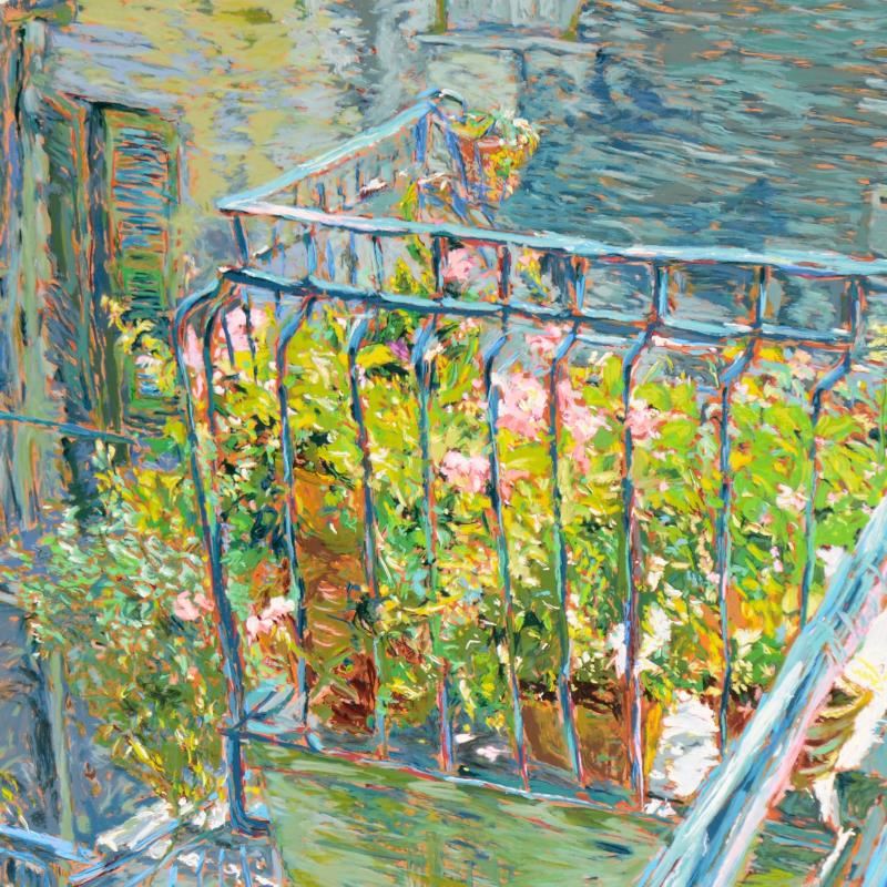 "Le Balcon BlueåÊ" is a limited edition serigraph on paper by Marco Sassone numbered and hand signed by the artist. Includes Letter of Authenticity. Measures approx. 37" x 37" (border) 33" x 32" (image).