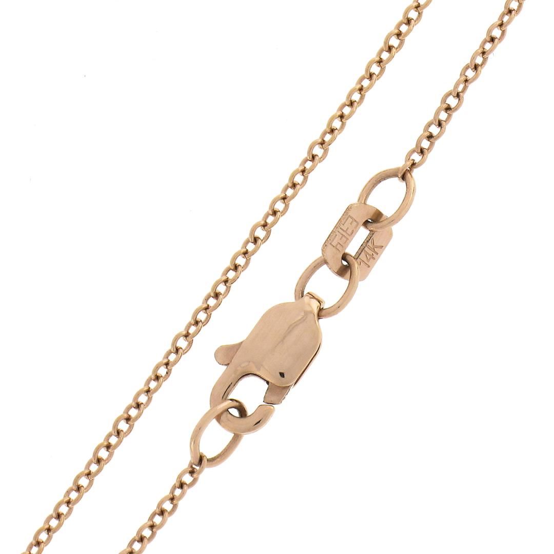 A solid 14k strawberry & rose gold pendant necklace by Le Vian, featuring 1 round cut natural fire opal (0.45ct), and 38 round cut natural diamonds (Fancy Brown & White - VS2/SI1 ; 0.75ctw). 18 inch cable link chain, 4.73 grams total weight, pendant measures 21.9x15.1mm.