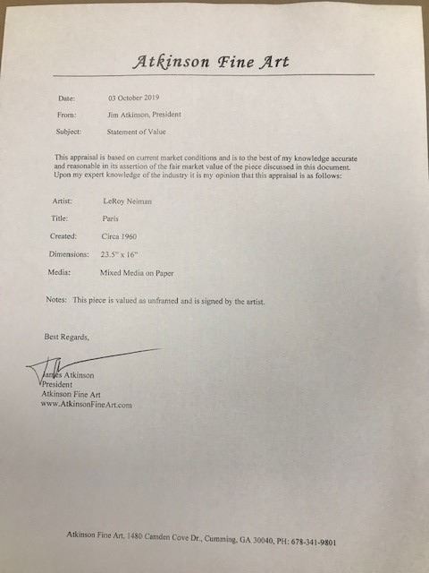 LeRoy Neiman "Paris" - Original mixed media sketch on paper signed by LeRoy Neiman - Circa 1960 - Framed size = 37" x 29" - Includes Certificate of Authenticity
