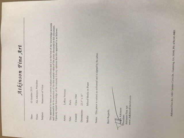 LeRoy Neiman "Paris" - Original mixed media sketch on paper signed by LeRoy Neiman - Circa 1960 - Framed size = 37" x 29" - Includes Certificate of Authenticity