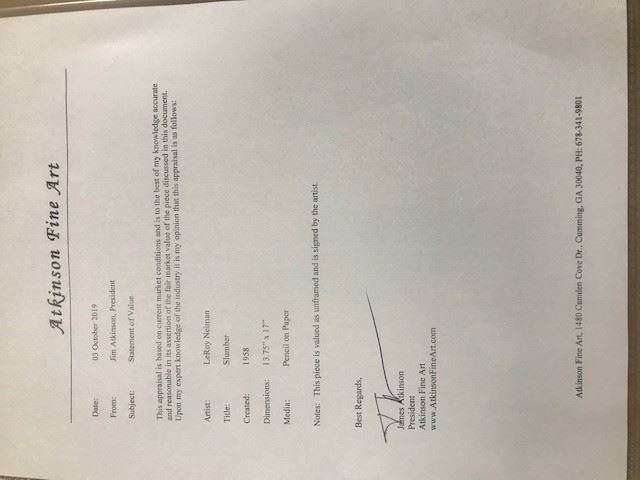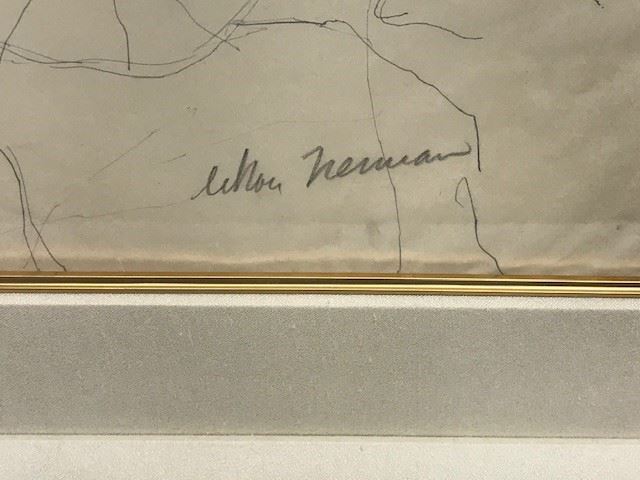 LeRoy Neiman "Slumber" Original pencil sketch on Paper signed by LeRoy Neiman - Circa 1958 - Framed size = 26" x 29" - Includes Certificate of Authenticity