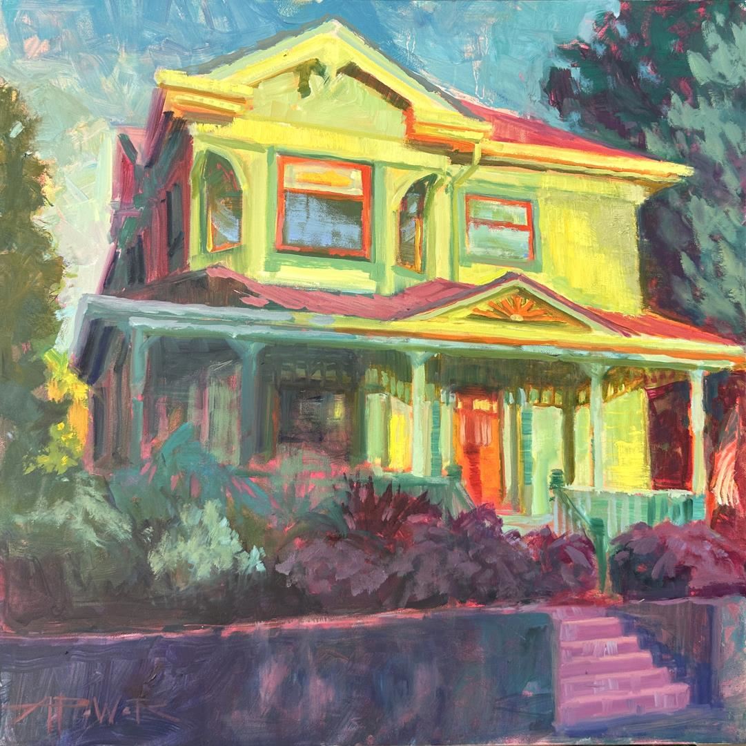 This award-winning 16x16 oil on gesso panel by Anette Power beautifully depicts the early morning light in Los Gatos, California, with artist's COA
