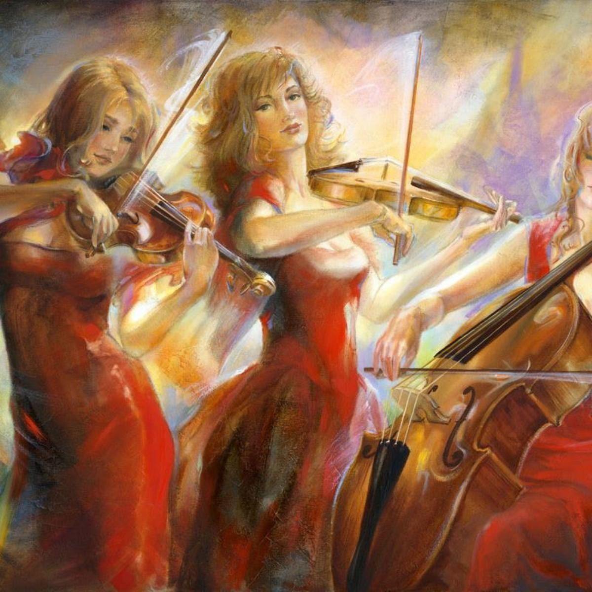 "Concert" is an artist embellished limited edition giclee on canvas. This piece is numbered and hand-signed by the artist and accompanied by a Certificate of Authenticity. Measures approximately 25" x 40". This item requires special handling and may have a longer than usual turnaround.