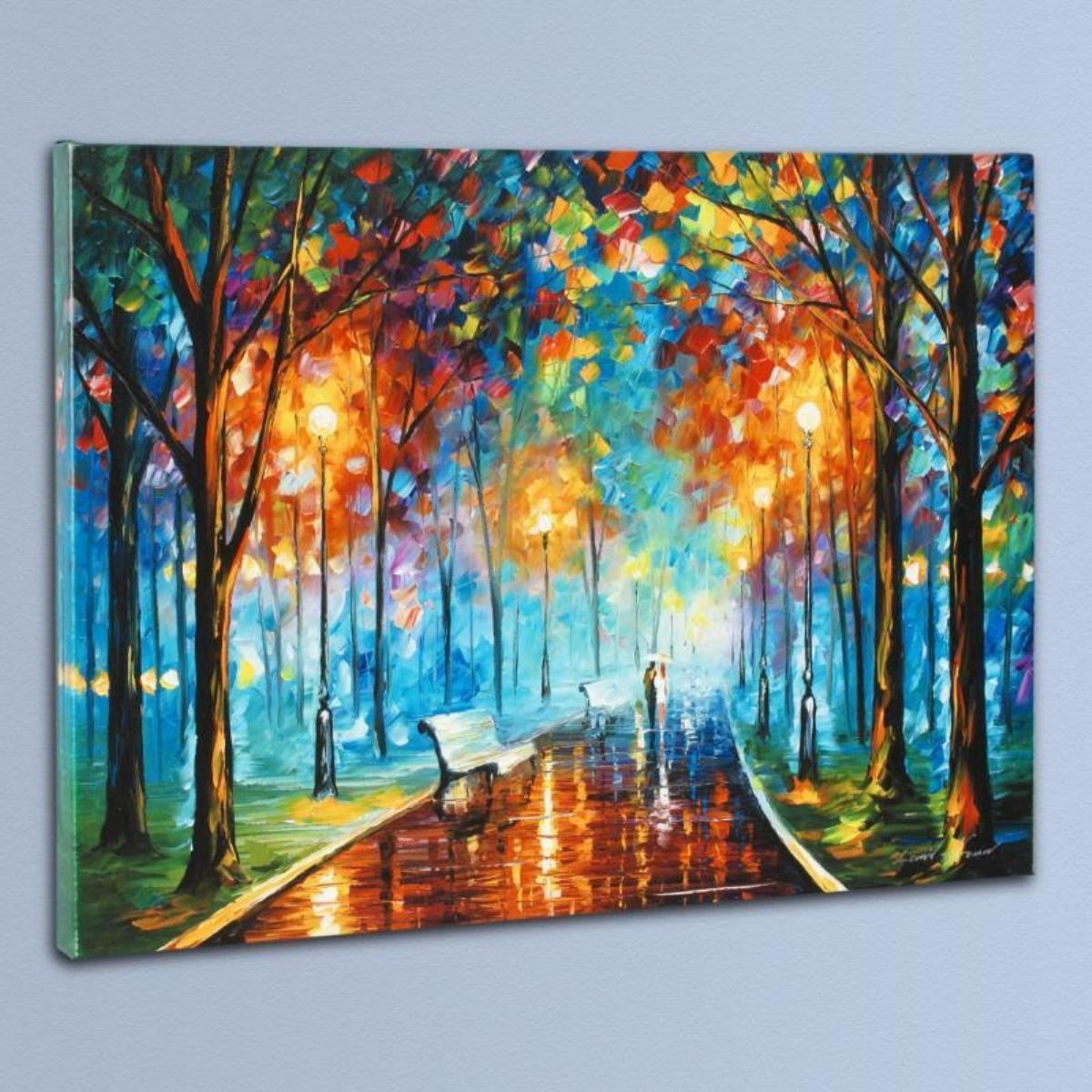 Leonid Afremov's (1955-2019) masterful use of color and texture make his paintings unique collectibles that are sure to brighten any wall. "Misty Mood" is a limited edition giclee on canvas. The piece is numbered and bears the artist's authorized signature. This piece comes gallery wrapped. Includes Letter of Authenticity. Measures approx. 24" x 18" (image). This item requires special handling and may have a longer than usual turnaround.