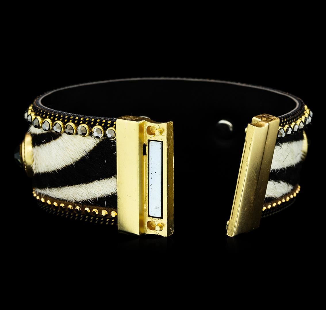 High end designer jewelry. Leopard Skin Crystal Bracelet - Gold Plated. Gold Pltd Magnetic Clasp. Brown/ Gold. 7.25inches.
