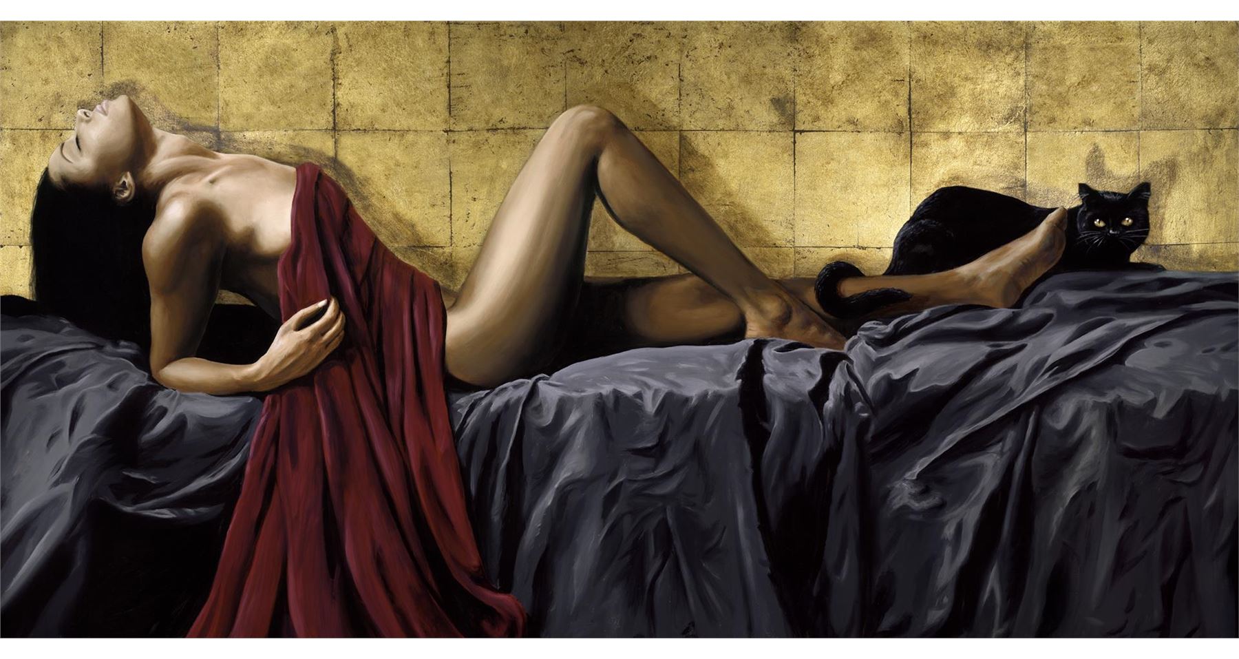 In a 24"x48" giclee on canvas DELLORCO honors the beauty & majesty of black women and cats. Signed & numbere w/COA.