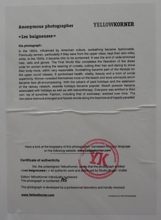 Les baigneuses Certified Photograph YellowKorner Certified Photograph. Certificate of Authenticity from YellowKorner affixed to the back. Matted Dimensions 16"x20". Protected with Clear Mylar Sleeve.