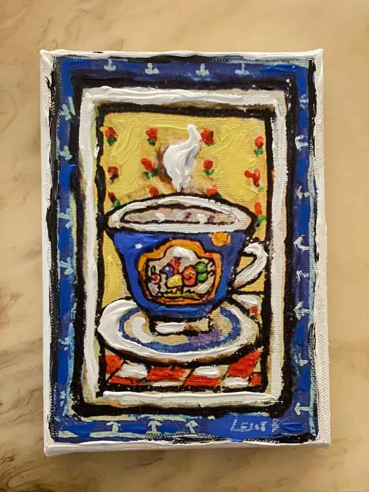 Leslie Lew "Country cup7" Original Sculpted Acrylic Monotype Dimensions: 7 x 5 Inches