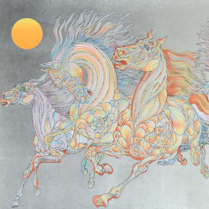 "Lever De Soleil" is a limited edition serigraph on paper with hand laid silver leaf by Guillaume Azoulay, numbered and hand signed by the artist. Includes Certificate of Authenticity! Measures approx. 38" x 27.5" (border)., 32" x 21" (image).