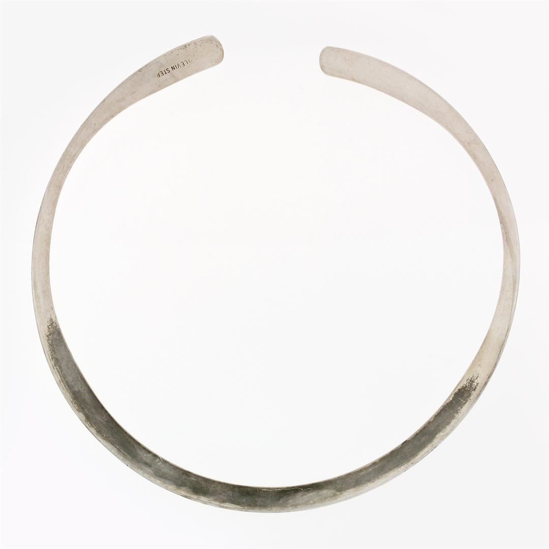 A vintage solid sterling silver cuff choker necklace by Levin Ster. 14.5 inch wire link chain, 24.06 grams total weight.