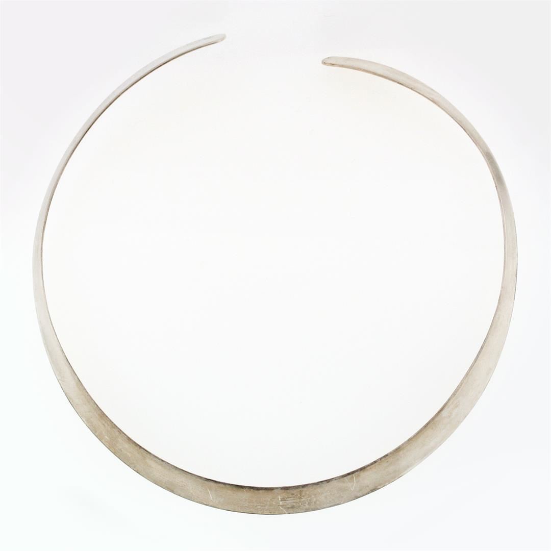 A vintage solid sterling silver cuff choker necklace by Levin Ster. 14.5 inch wire link chain, 24.06 grams total weight.
