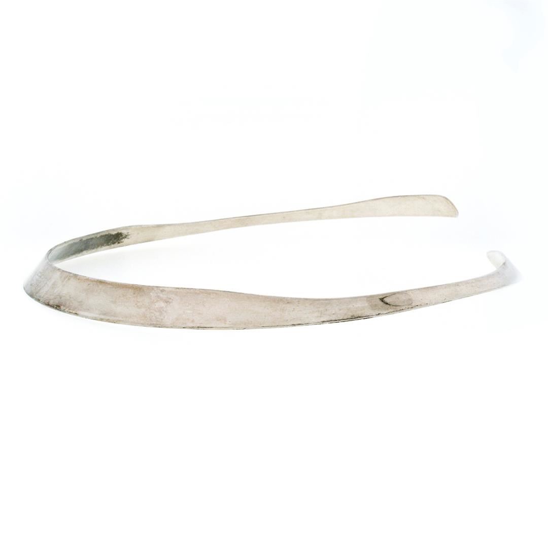 A vintage solid sterling silver cuff choker necklace by Levin Ster. 14.5 inch wire link chain, 24.06 grams total weight.