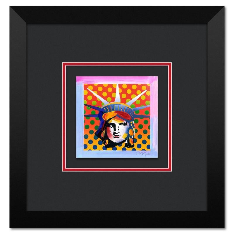 "Liberty Head XI" is a limited edition lithograph on paper by Peter Max, numbered and hand signed by the artist. This piece comes framed. Includes Certificate of Authenticity from Peter Max Studios. Measures approx. 17" x 17" (frame), 7" x 7" (image). This item requires special handling and may have a longer than usual turnaround.