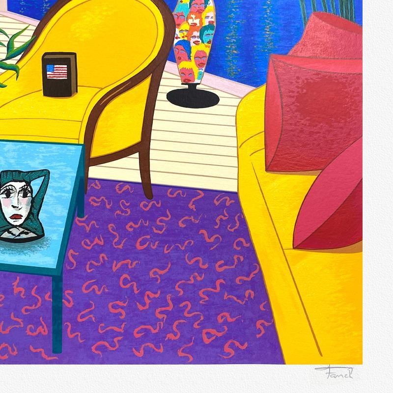 "Liberty Interior" is a limited edition serigraph on paper by Fanch EA numbered and hand signed by the artist. Includes Letter of Authenticity. Measures approx. 34" x 40" (border) 31" x 37" (image). This proof came from Fanch Ledans personal collection. It may have some slight imperfections in the image and border but its overall condition was inspected and approved by him.
