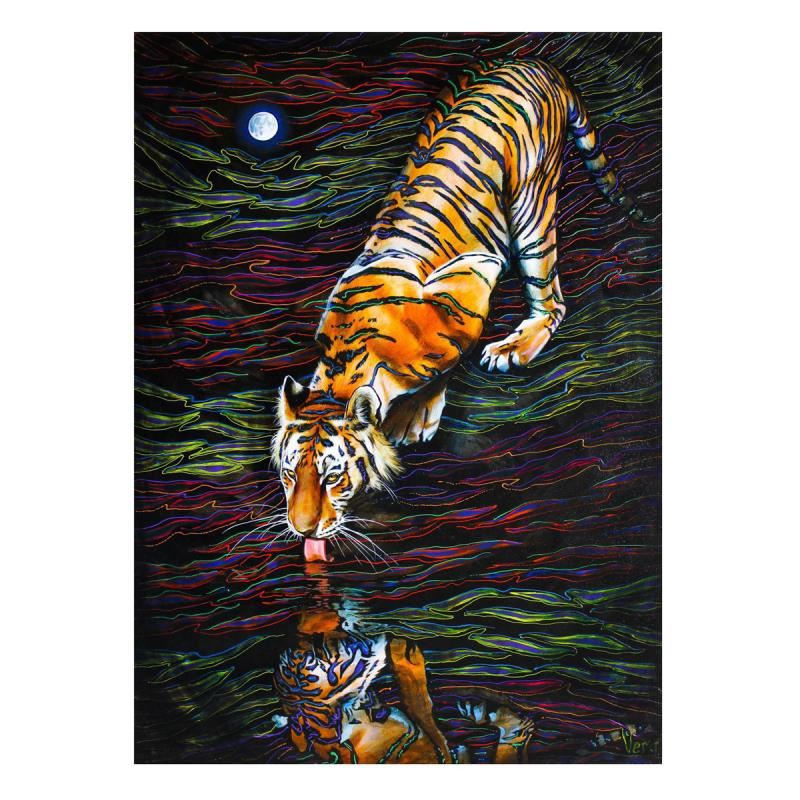 Licking A Puddle by Goncharenko Original. All available information is listed in the description and shown in the photo. "Licking A Puddle" is an original painting oil on canvas by Vera V. Goncharenko. The piece is hand signed by the artist and comes with