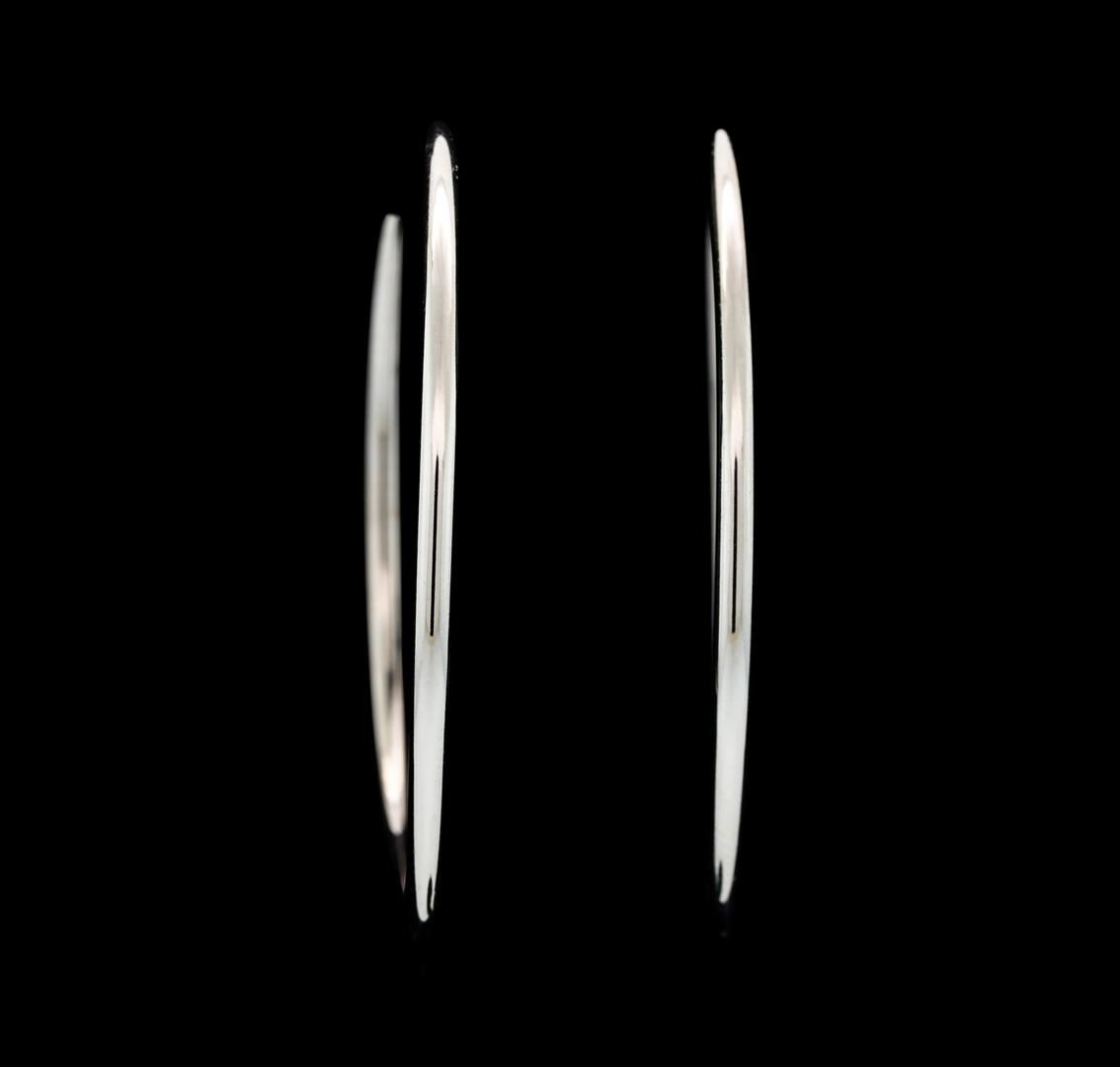 One pair of lightweight hoop earrings featuring: 14KT white gold weighing 2.17 grams.