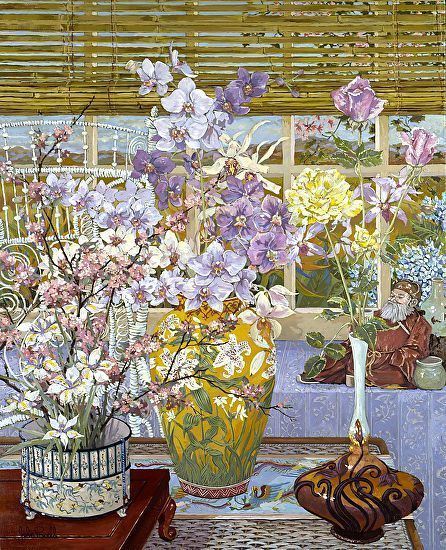 A charming 30.25x24.25 floral setting. Ltd edition on paper, by John Powell