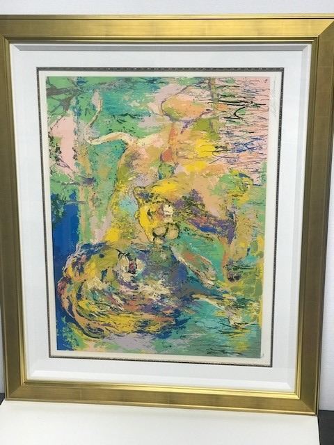 "Lion Couple" by LeRoy Neiman (1921-2012) - Hand signed limited edition serigraph #296 of 300 - Includes Certificate of Authenticity - Framed size = 54" wide x 44" tall