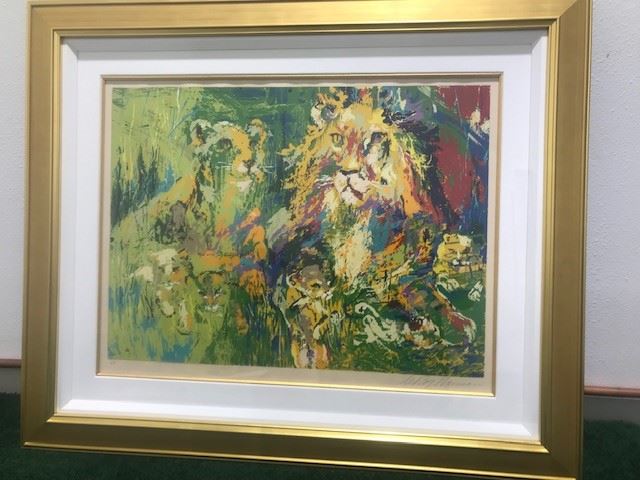 "Lion Family" by LeRoy Neiman (1921-2012) - Hand signed limited edition serigraph - AP (Artist Proof). Framed size = 39" x 47"