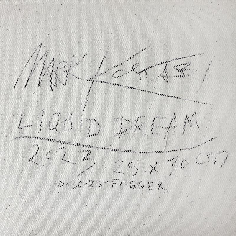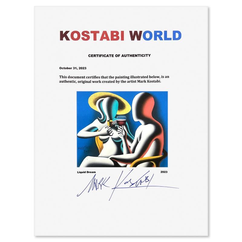 "Liquid Dream" is an original oil painting on canvas by Mark Kostabi, hand signed by the artist. Includes Certificate of Authenticity. Measures approx. 10" x 12" (image).