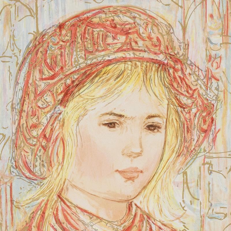 Wild lines and muted colors make Edna Hibel's art stand out in any room. "Liv" is a limited edition serigraph on paper, numbered and hand signed by Hibel (1917-2014). Includes Certificate of Authenticity! Measures approx. 12" x 14.5" (with border), 9" x 11.5" (image).