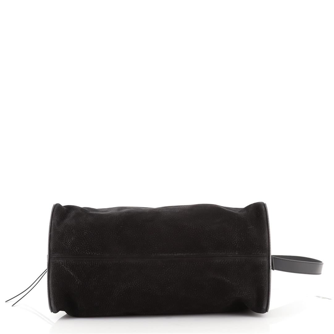One Loewe Berlingo Bag Nubuck with Calfskin Large Black. Item is sold AS-IS. All available information is listed in the description and shown in the photo. Loewe Berlingo Bag Nubuck with Calfskin Large Black Condition Details: Moderate wear and scuffs on exterior and strap, small indentations on sides. Minor wear in interior, scratches on hardware. Height ", Width ", Depth ", Strap Drop 13-21