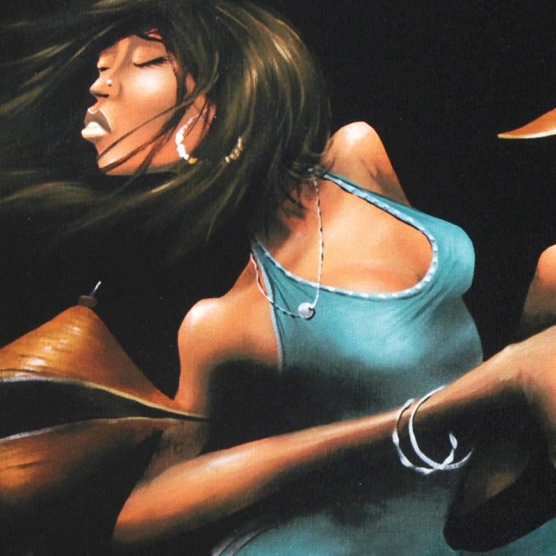 Combining his passions for music and art, David Garibaldi creates stunning visual poetry. "Lola Beats" is a limited edition giclee on stretched canvas, E numbered and bearing the artist's authorized signature. This piece comes gallery wrapped. Includes Certificate of Authenticity! Measures approx. 36" x 24" (image).