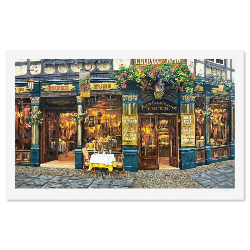 "London for Two (White)" is a limited edition printer's proof on paper by Viktor Shvaiko, numbered and hand signed by the artist. Includes Letter of Authenticity. Measures approx. 34.5" x 54" (border), 30" x 50" (image).