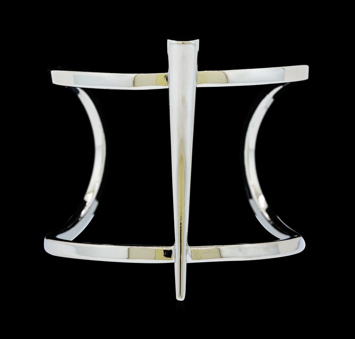 High end designer jewelry. Long Spike Cuff Bracelet - Silver Plated. Silver Plated Metal. Silver. 6.5inches.