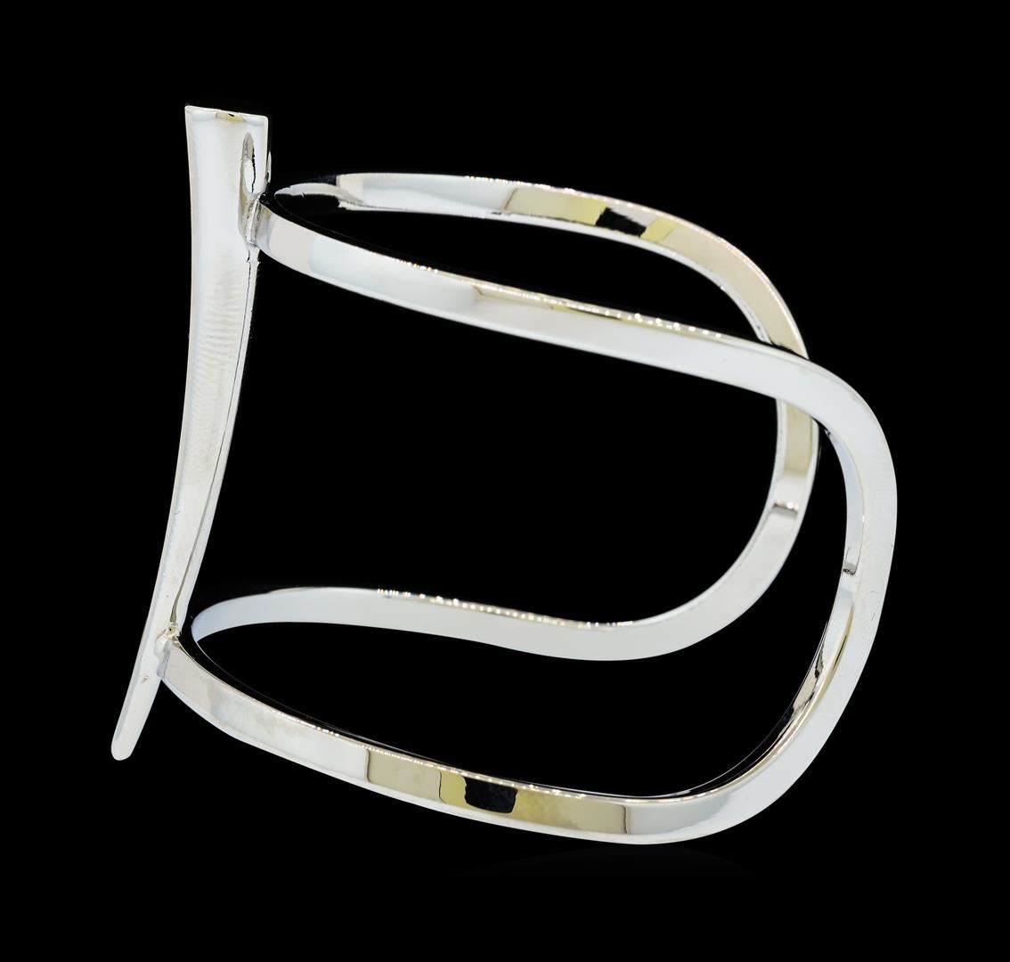 High end designer jewelry. Long Spike Cuff Bracelet - Silver Plated. Silver Plated Metal. Silver. 6.5inches.
