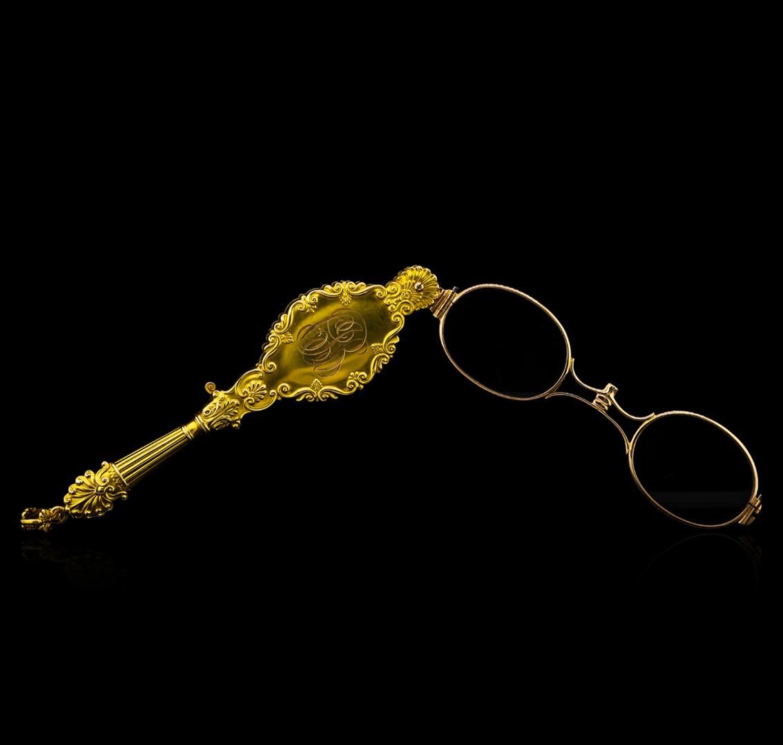 One 19th century Lorgnette 14KT yellow gold hand assembled antique opera glasses with a bright polish finish. The glasses are in very good condition.