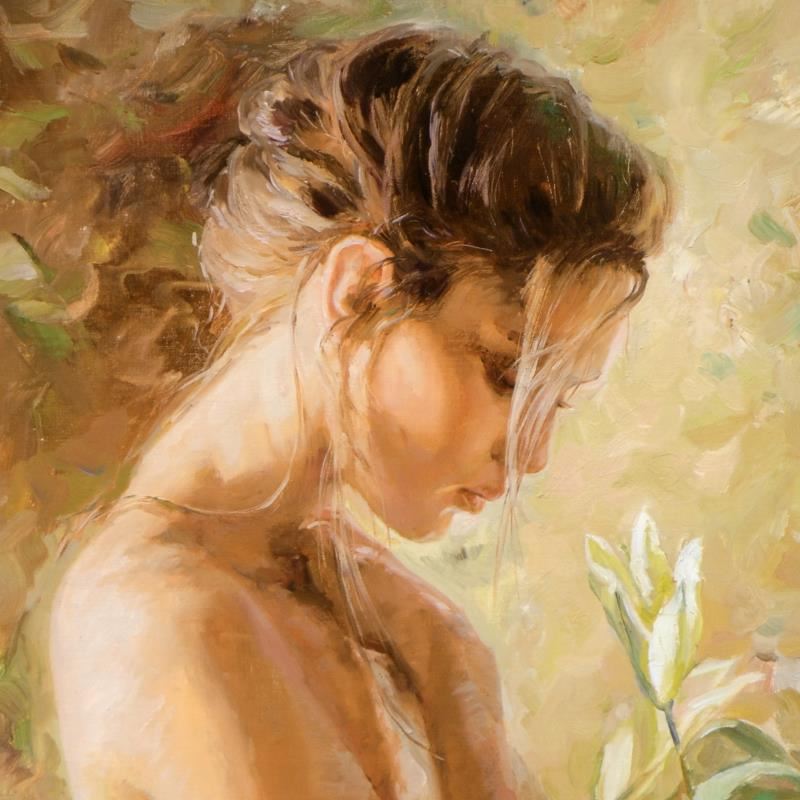 "Lost In Lilies" is a limited edition hand embellished giclee on canvas by the husband and wife team, Mikhail and Inessa Garmash! This piece is numbered and hand signed by the artists! Includes Certificate of Authenticity! Measures approx. 20" x 24" (image).