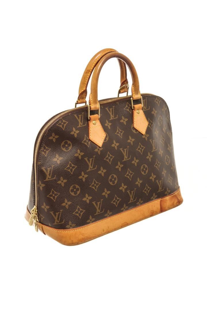 Louis Vuitton Alma PM Tote Brown Monogram Coated Canvas. Brand: Louis Vuitton, Style: Alma PM, Type: Tote, Exterior Color: Brown Monogram, Exterior Material: Coated Canvas, Exterior Pockets: None, Interior Color: Brown, Interior Material: Canvas, Interior Pockets: One, Closure: Zip, Handle/Strap Type: Top Handle, Length: 12, Width: 6.5, Height: 9, Handle Drop: 4. Condition: Vachetta is stain and worn. Item is sold AS-IS and all information pertaining to this lot is available in the photos or this description.