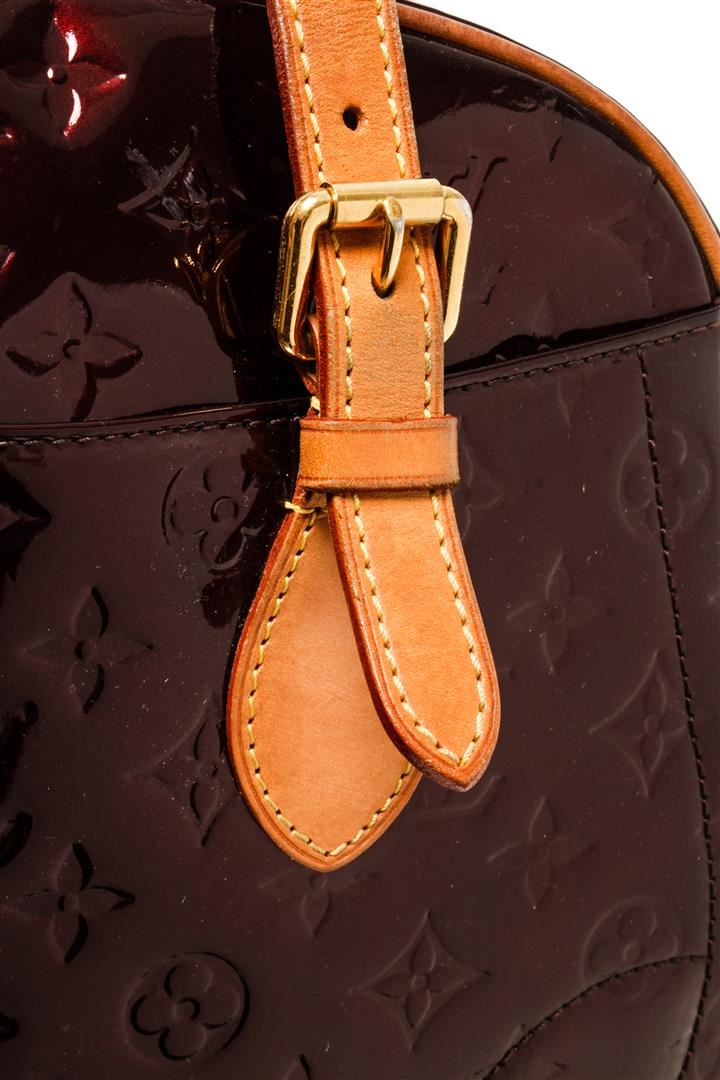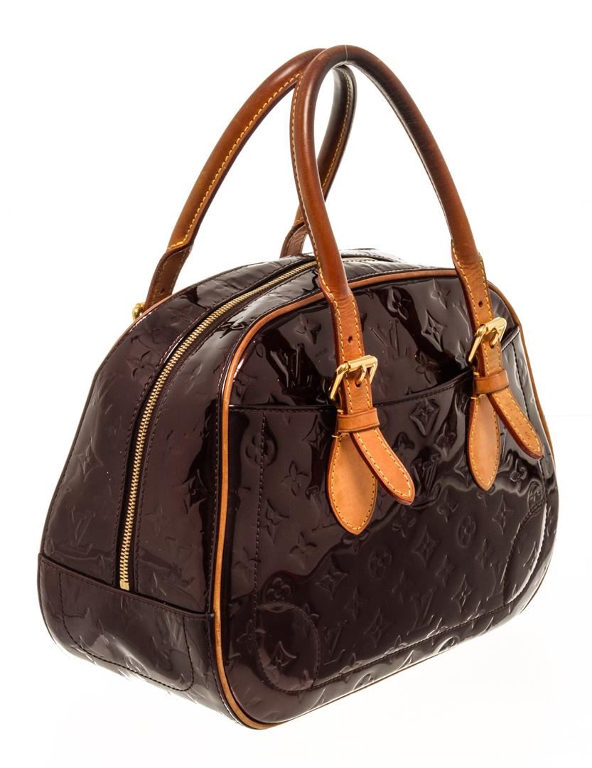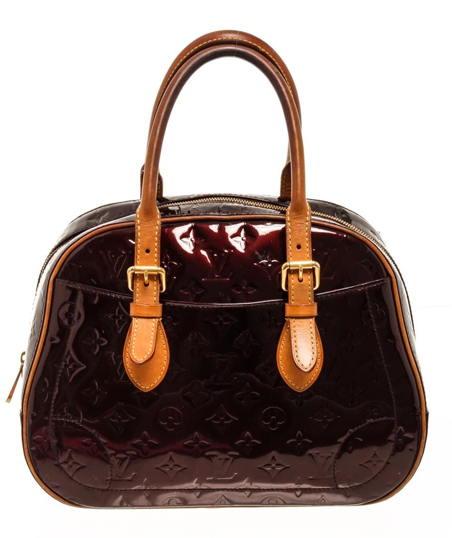 One Louis Vuitton Amarante Monogram Vernis Summit Drive Bag. Item is sold AS-IS. All available information is listed in the description and shown in the photo. louis vuitton amarante monogram vernis summit drive bag with gold-tone hardware, amarante monogram vernis patent leather dual rolled handles and exterior slip pockets, it is secured by a wide two-way zip closure that opens to a roomy fabric interior to hold all your essentials. Length: 12.59", Width: 5.51", Height: 9.44" / Length: 32 cm, Width: 14 cm, Height: 24 cm