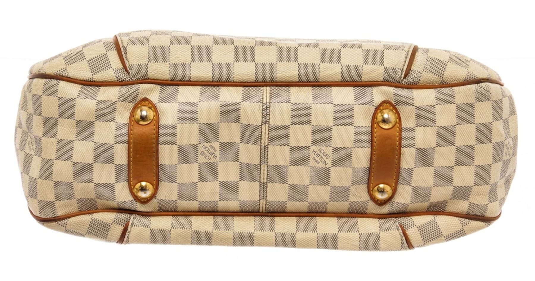 Louis Vuitton Beige Damier Azur Galliera PM Hobo Bag. All available information is listed in the description and shown in the photos. Louis Vuitton Beige Damier Azur Galliera PM Hobo Bag with neutrals coated canvas, damier azur pattern, brass hardware, leather trim, single adjustable shoulder strap, alcantara lining & dual interior pockets, protective feet at base, includes dust bag, snap closure at front. Height: 11" Width: 18" Depth: 4.5", Shoulder Strap Drop: 7.75" / 27.94 x 45.72 x 11.43 Cm