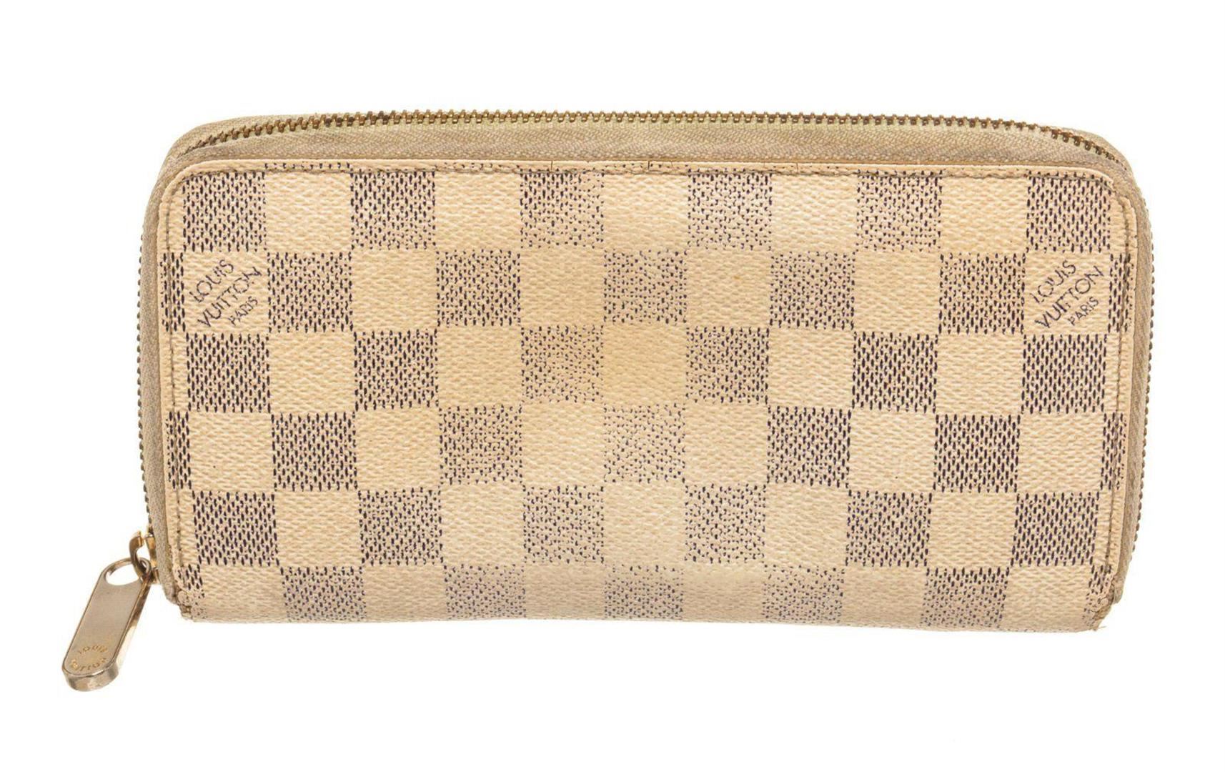 Louis Vuitton Beige Damier Canvas Zippy Wallet with material damier canvas, gold-tone hardware, 8 card slots, interior three compartments pockets and zipper closure.