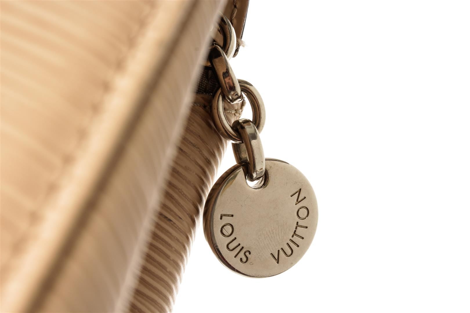 One Louis Vuitton Beige Epi Leather Brea MM Satchel Shoulder Bag. Item is sold AS-IS. All available information is listed in the description and shown in the photo. Beige Epi leather Louis Vuitton Brea MM bag with silver tone hardware, leather trim, brown canvas lining, three interior pockets (one with zipper closure, 2 slip pockets), embossed LV logo on front bottom corner, dual flat leather handles, detachable adjustable leather strap, and top zipper closure. .