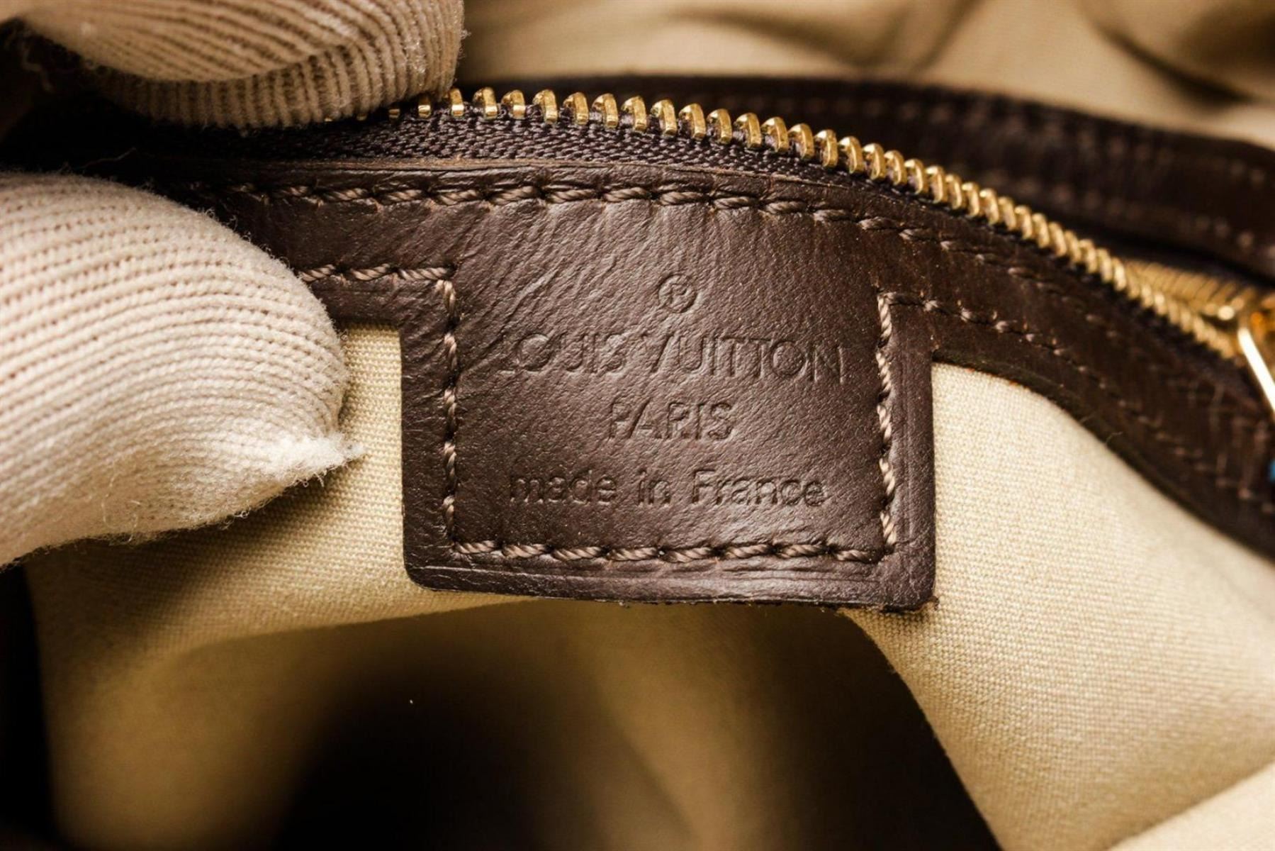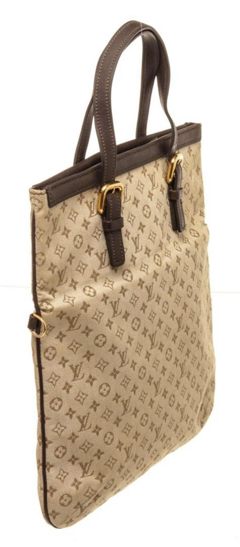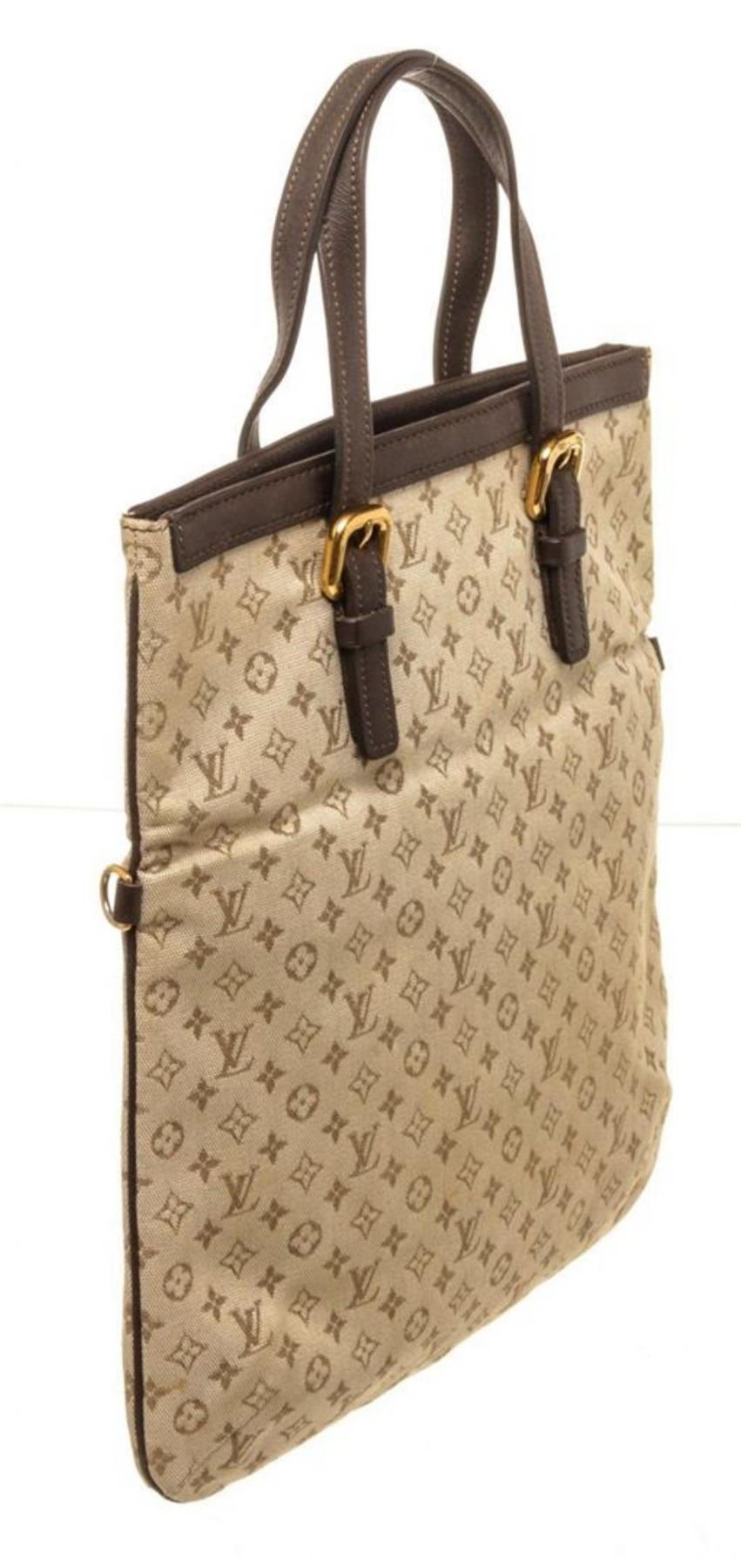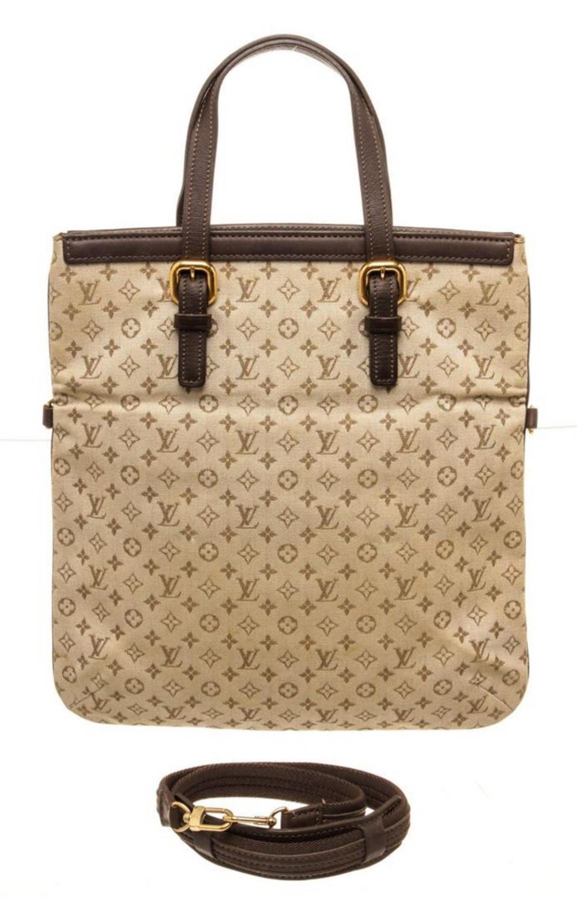 Louis Vuitton Beige Light Green Mini Lin Francoise Tote Bag with gold-tone hardware, gray fabric interior lining, one zip pocket at interior wall, dual flat leather handles, removable leather shoulder strap and open top.
